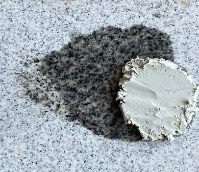 Plama oleju na granicie Nałożenie pasty częściowo na plamę Po 1 godzinie usunięcie pasty