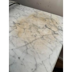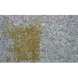Bardzo często na granitach w szczególności jasno szarych występują zabarwienia rdzawe. Jednak nie zawsze jest to rdza. Trzeba dokładnie się przyglądną tym zabarwieniom ponieważ czasami użycie odrdzewiacza nie pomoże. Jeżeli plama jest koloru jasno żółtego lub jasno rudego wówczas zabarwieni nie wystapiło z korodującego metalu a wychodzi ze składu granitu w postaci tlenku gliny. W takiej sytuacji należy użyć mocniejszego preparatu czyszczącego Calx Out wyłącznie do granitu.